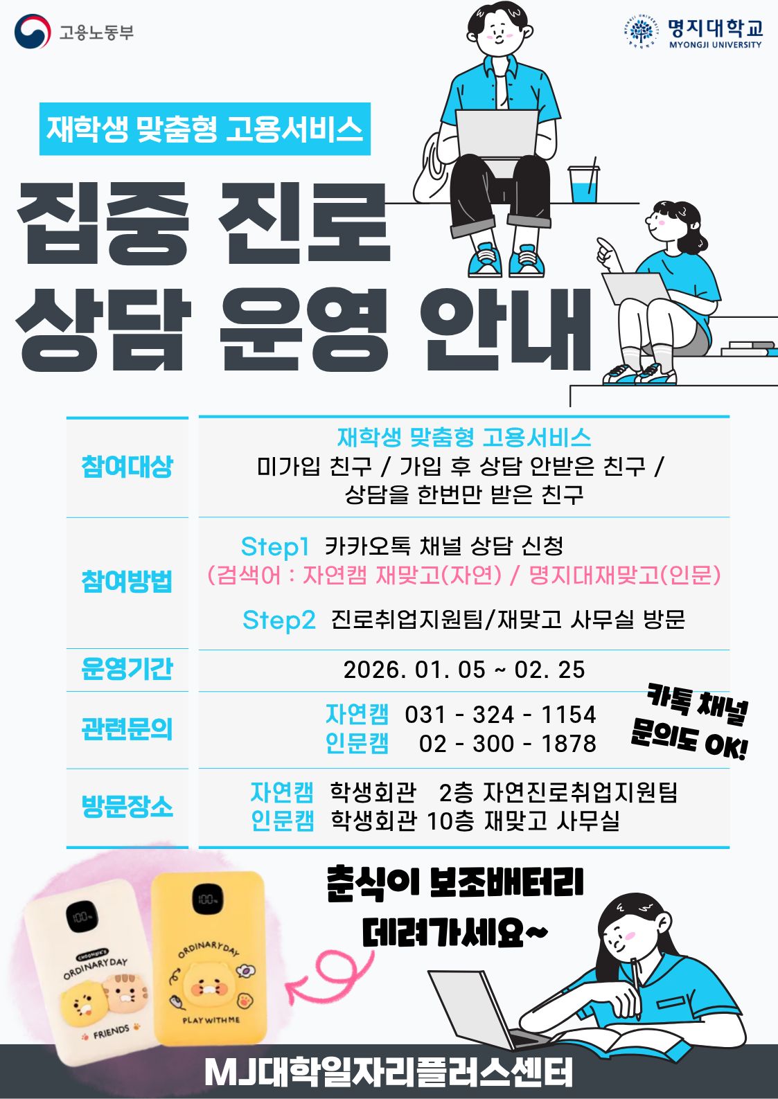 안녕하세요, MJ대학일자리플러스센터입니다!