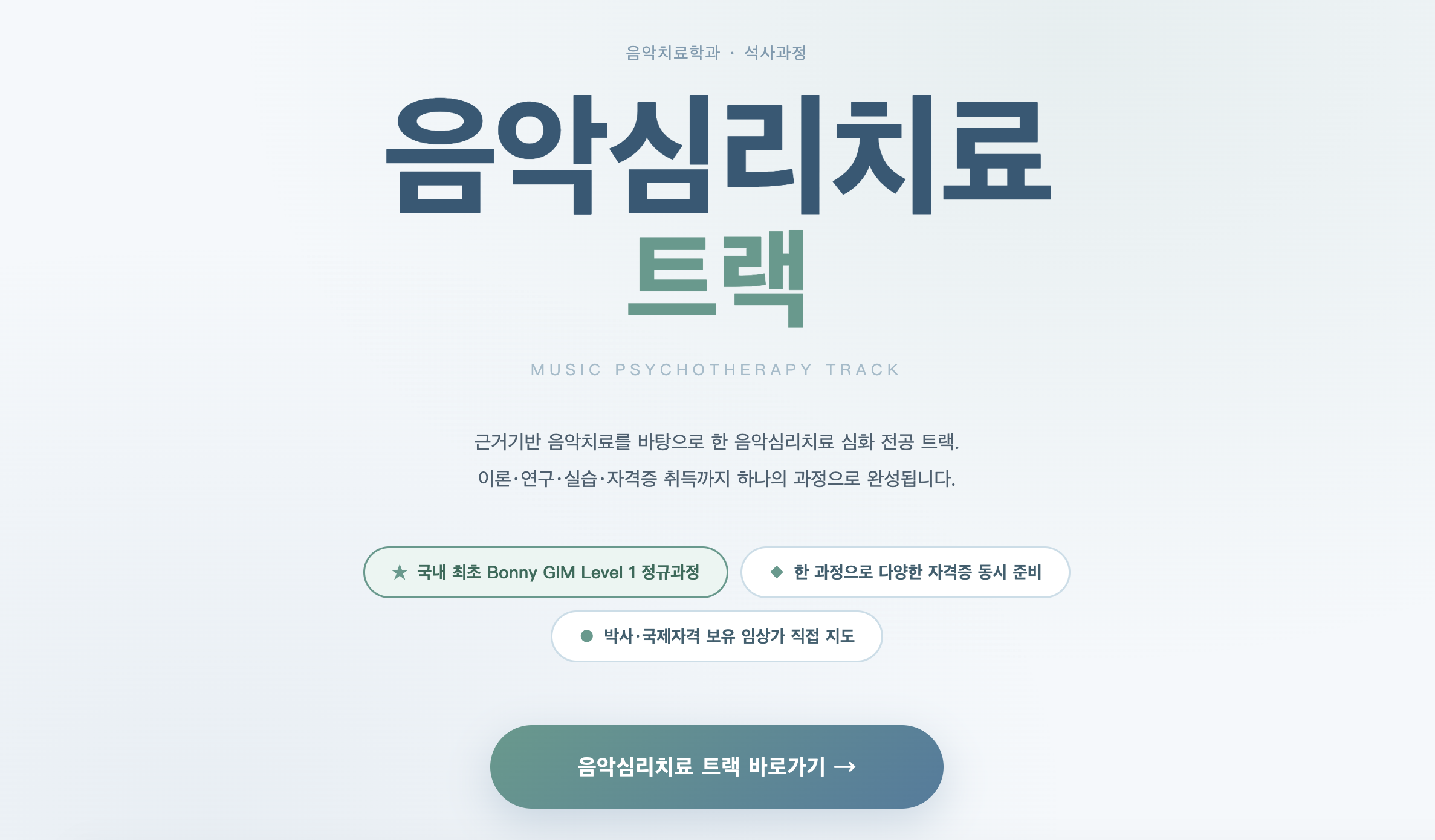 fnctId=bbs,fnctNo=228 음악치료학과 음악심리치료 트랙 소개 작성일2026.04.20 수정일2026.04.21 작성자 안*경 조회수190 첨부파일 첨부파일이(가) 없습니다.